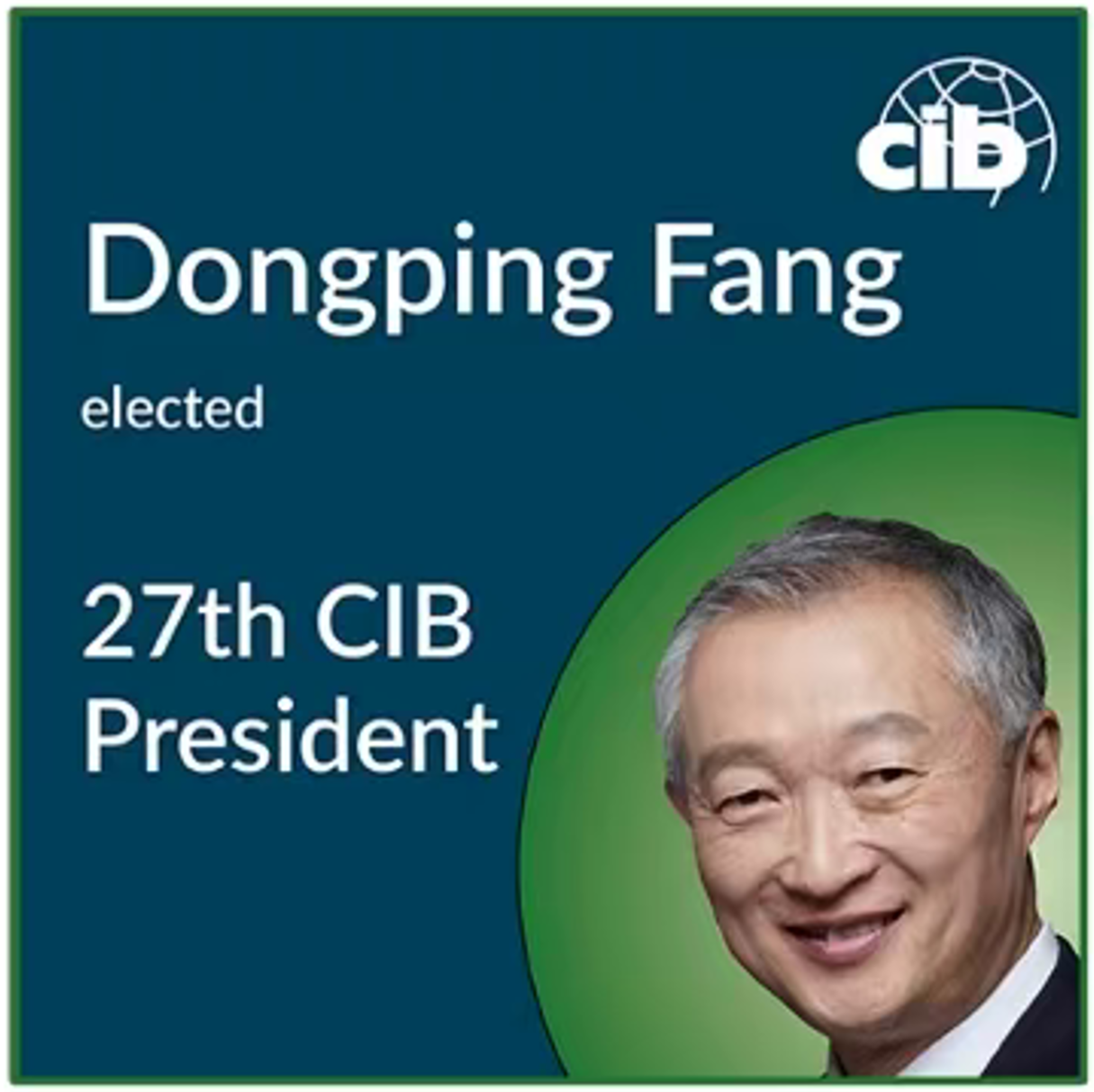 Prof Dongping Fang of Tsinghua University's School of Civil Engineering hasbeen elected as the 27th President of the CIB by its General Assembly held atPurdue University on 20th May 2025 during the CIB's World BuildingCongress. His term of office will be three years