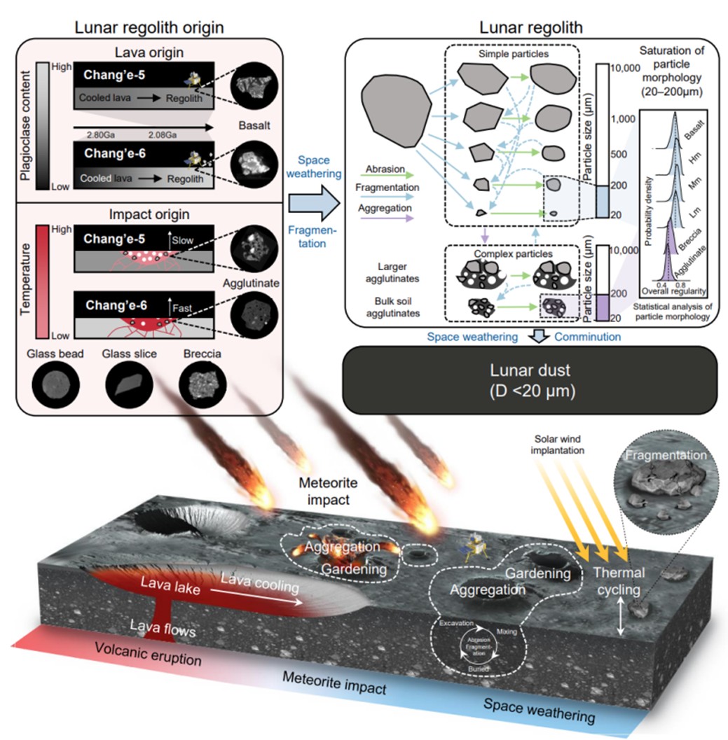 近日,清华大学水利水电工程系崔一飞副教授团队联合武汉大学、香港理工大学、中国科学院地球化学研究所和地质与地球物理研究所学者,在月球样品颗粒物性研究领域取得重要进展。其研究成果系统揭示了太空风化在改造月球表层月壤颗粒形态作用中存在饱和效应,成果发表于国际期刊《自然·通讯》(Nature Communications)。该研究基于我国嫦娥五号与嫦娥六号任务获取的月球样品开展,为理解月球正、背面表层月壤的形成和长期演化过程提供了新的约束机制。