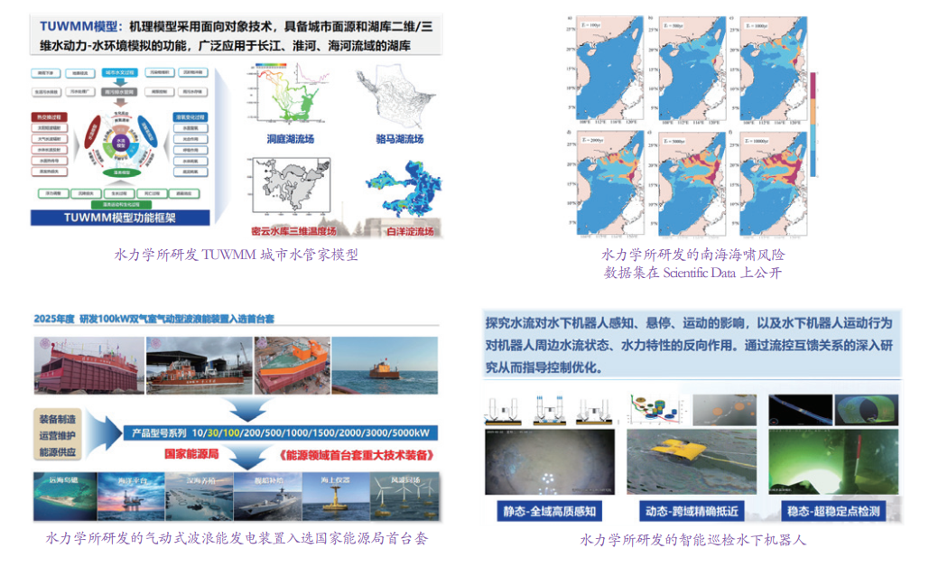 研究所主要研究方向包括工程水力学、环境和生态水力学、城市水力学、海岸动力学、冰水力学、海洋灾害与海上工程安全、海洋新能源开发等方面。主持和参与过的科研项目包括国家科技支撑计划课题、国家重点研发计划项目和课题、自然科学基金重点项目、自然科学基金重点国际合作项目、中国工程院重大咨询项目等。研究成果获国家及省部级奖励 20 余项,包括国家科技进步二等奖 1 项、教育部科技进步一等奖 2 项、教育部自然科学一等奖等。